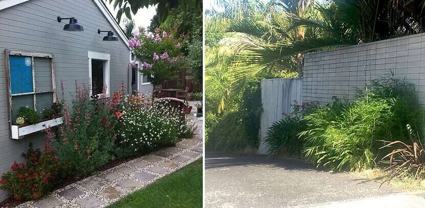 This image (above) shows how you can create a garden bursting with life in a narrow planting strip. Extra points here for the old window frame converted into a planter! TRY: Plants like Penstemon, Salvia and Impatiens will do well here, and will attract bees and butterflies too.