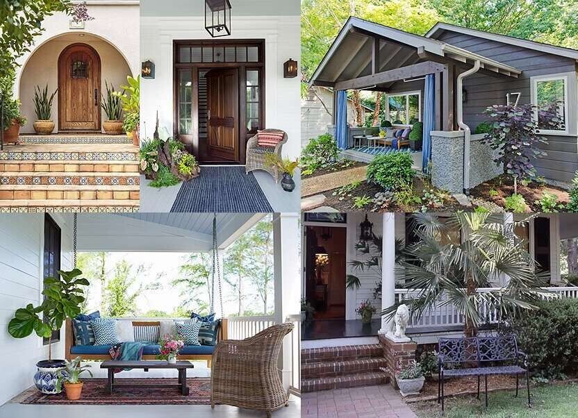 Tip: Symmetrical placement of porch decorations, such as planters, furnishings, etc. is more pleasing to the eye than a random, scattered appearance.