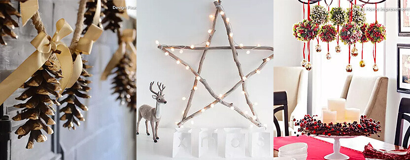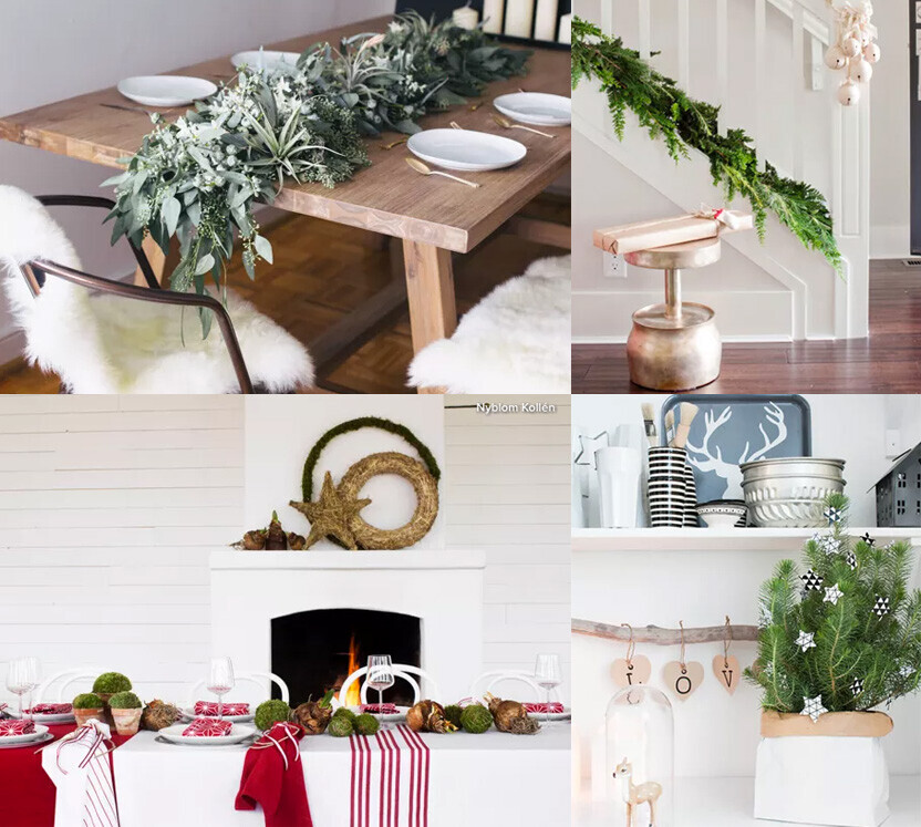 A lovely way to bring the fresh scent of Christmas into the home is to cut pine or evergreens, eucalypt, holly and rosemary and string it along balustrades, above doorways, around windows and along the table as a centrepiece.