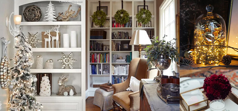 Transform an existing bookshelf into an enchanting showpiece with a few decorative ornaments. Or why not go over the top and replace the entire unit’s contents with Christmas sparkle?