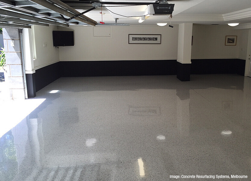Have garage carpet professionally installed for a tidy, stain-resistant result that covers all kinds of defects. Or try adhesive carpet tiles, which have come a long way in recent times. Tiles are now available that are petroleum resistant (ie. wipe off oil stains with a cloth) and can be power washed. Again with the freedom of creative expression with colours!