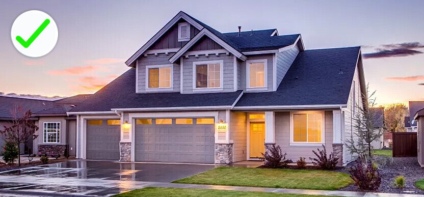 Above: This home is visible from the street, clear of hiding places and is well lit from inside, with security lighting outside. A thief would be much more likely to go for an easier target.