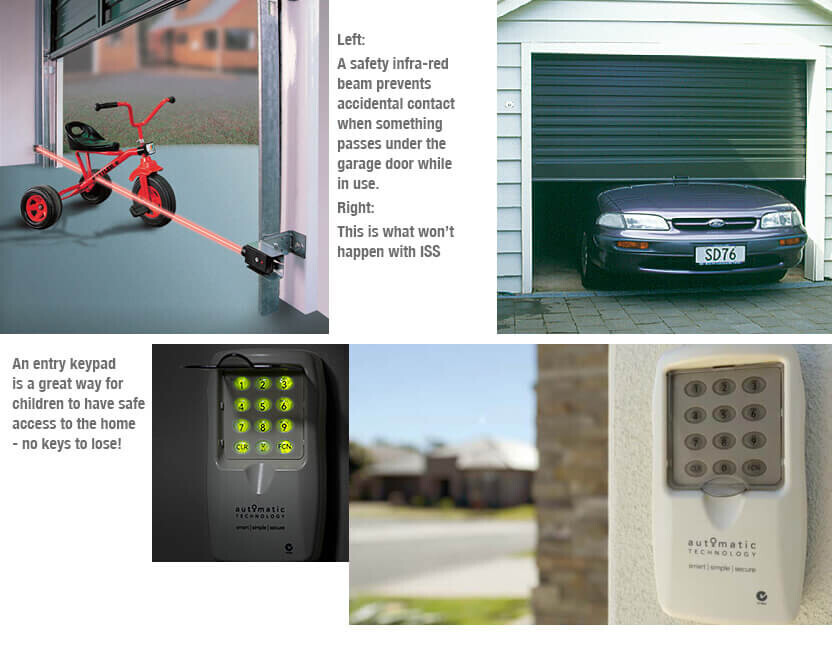 This one is a top safety precaution, especially important in households where young children or pets are present. A safety infra-red beam can be fitted to your garage door and opener. It runs across the opening so that if the beam is broken while the door is closing, the opener will stop and reverse the garage door without making contact. The safety infra-red beam is an optional extra fitted to your garage door and operated through the automatic garage door opener. Garador recommends the use of safety infra-red beams on ALL automatic garage doors.