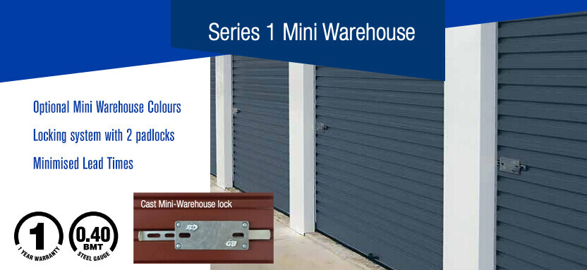 Series 1 Mini Warehouse Roll-A-Door • Durability and security with ease of operation • Specifically designed locking system accommodating 2 padlocks • Nylofelt and Roll-A-Guide for smooth, quiet, greaseless operation and less maintenance • Available in an extensive range of colours, as well as optional mini-storage colours to identify with your brand
