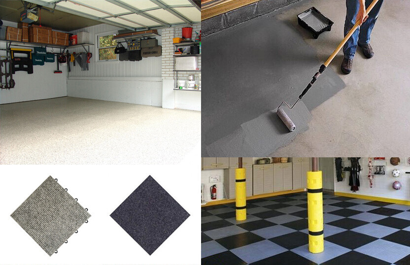Carpet tiles can be a great option for the garage. They are usually made of polypropylene or olefin synthetic fibre. This material is resistant to staining, abrasion, UV fading, mould and mildew. Importantly, it is fire resistant and has a tendency to melt when exposed to flame or intense heat instead of catching fire. Available in a modular interlocking tile or as a peel and stick design, carpet tiles will give your floor the comfort of carpet while still offering good resistance to staining and some chemicals.