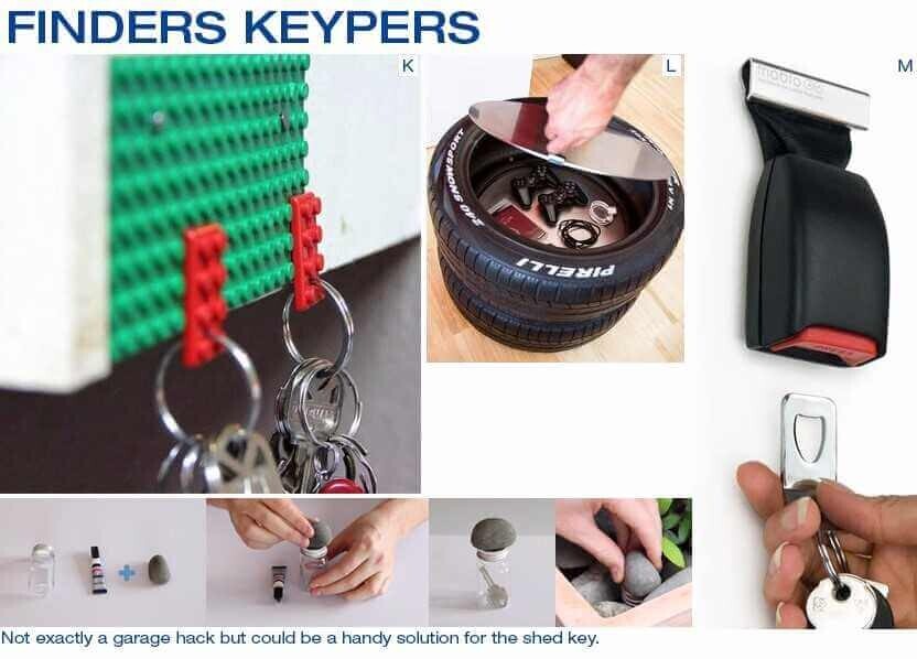L. The tyre cubby hole in our picture hasn’t been used in a garage but it could be a great way to keep car parts and other odd-shaped items corralled safely.