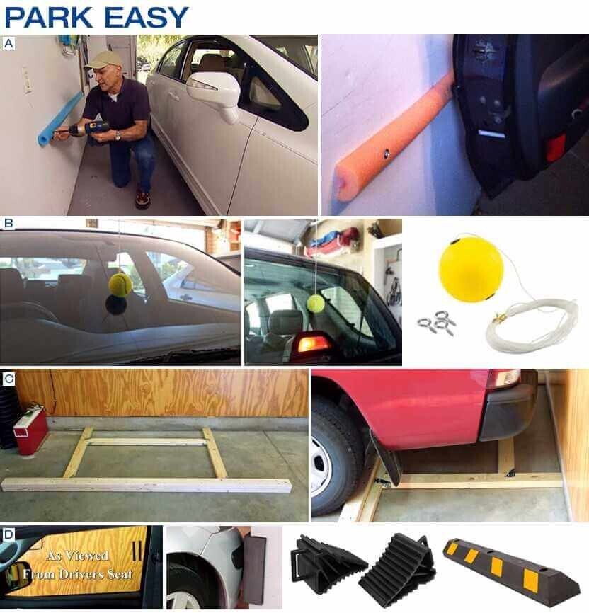 D. Probably the most basic hack is to add a marker or define a reference point that helps you align your car as you park. Tape on the wall, the light switch - park your car at the best spot then find a spot that you can line up to in the future!