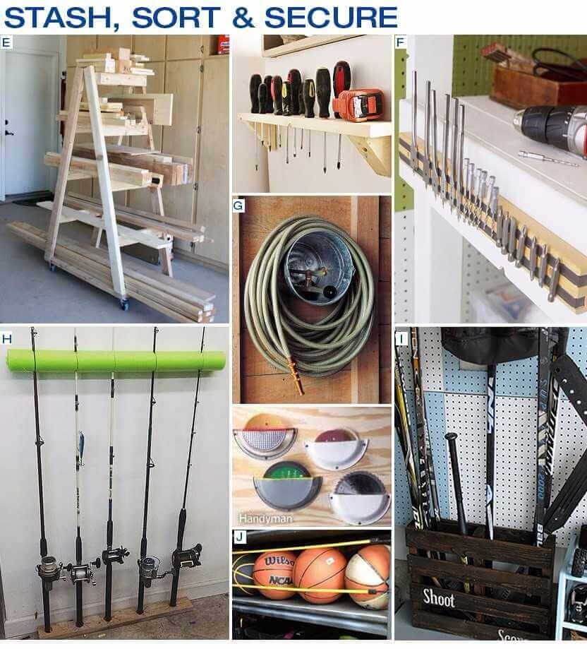 E. Some garages seem to collect pieces of wood in different lengths and widths that would all come in very handy for something, someday. A large trestle is the perfect storage caddy for these really useful pieces of flotsam. Add wheels and it can be moved out of the way in a stress-free manner.